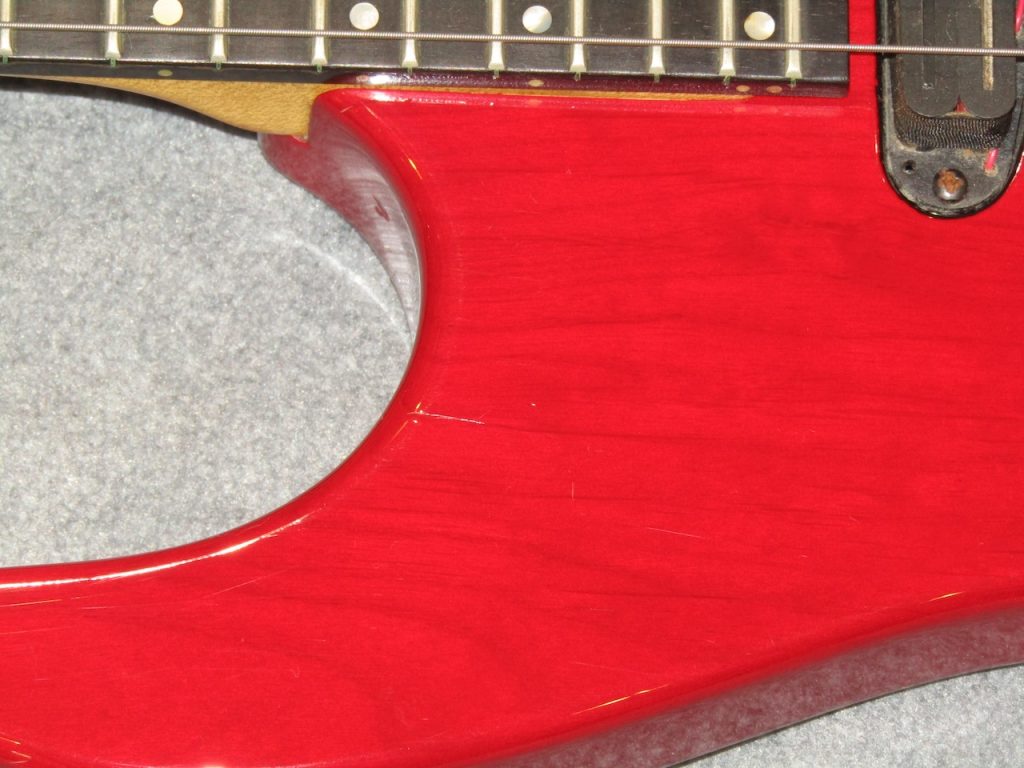 小さなキズ多数、ボディ下部に塗装欠け、上部角に僅かな塗装クラックがございますが、ネックの状態良く、演奏性良好、年数からすると良い状態と言えます。